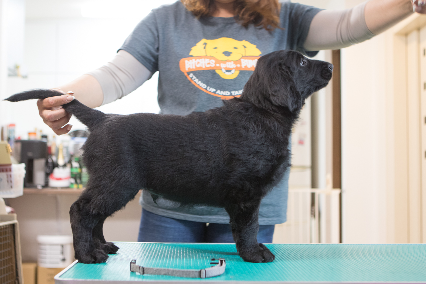 フィンランドからの輸入犬クアッド(JKCCH T.CH LTJCH EEJCH SALASANA HIGH LANDER)とスウェーデンからの輸入犬、2013年度日本No.1フラットノーナ(INT.CH JKCCH ALMANZA POWER OF LOVE)との待望の組み合わせ。容姿・骨格構成に優れているだけでなく、訓練性能も大いに期待できる子犬たちです。